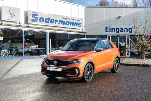 Unser behindertengerechter Volkswagen T-Roc R ist ein Selbstfahrerumbau. Eingebaut haben wir hier einen Multifunktionslenkraddrehknauf (MFD), ein Handgerät zur Bedienung von Gas und Bremse und eine Pedalsperre.